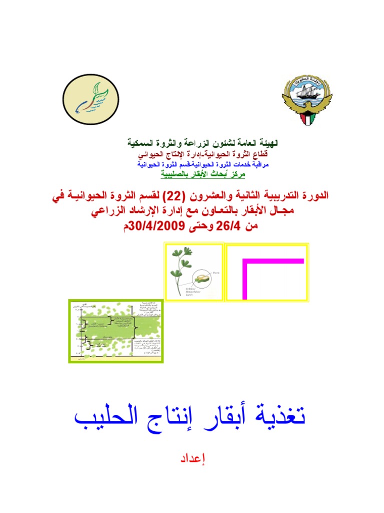 كتيب تغذية أبقار إنتاج الحليب اعداد الدكتور الشافعي عمر والمهندس احمد اتش
