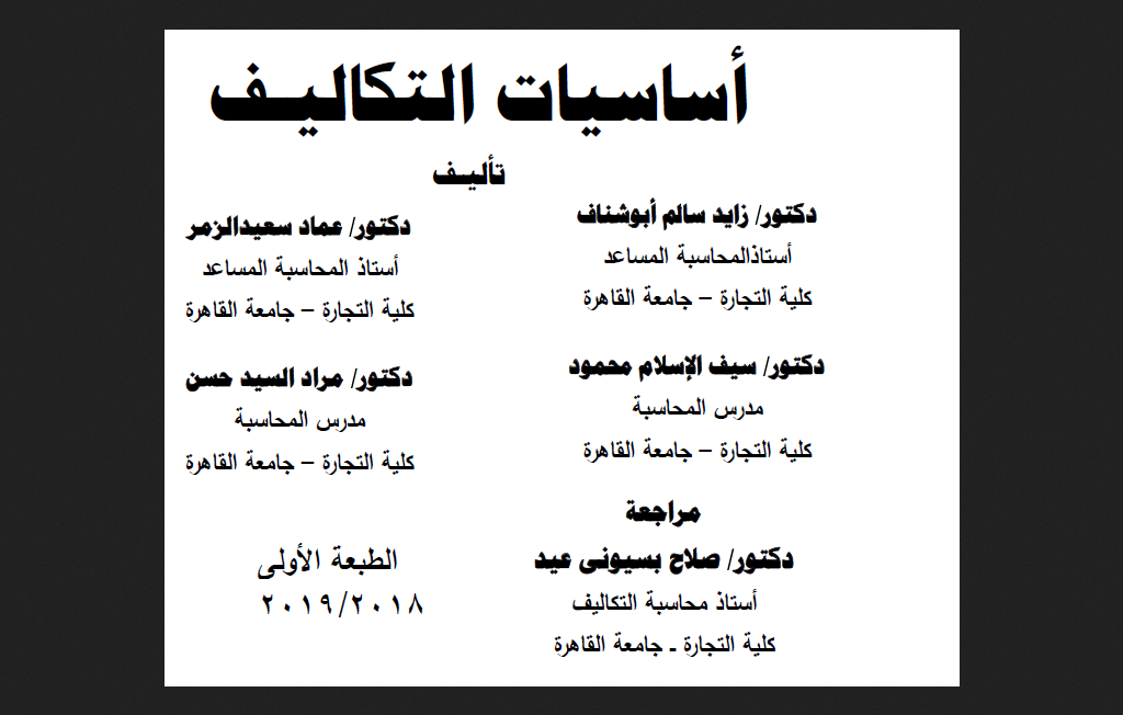 تحميل احدث كتاب محاسبة تكاليف اساسيات محاسبة التكاليف 2018 2019 جامعة القاهرة كلية التجارة كتابك عندنا